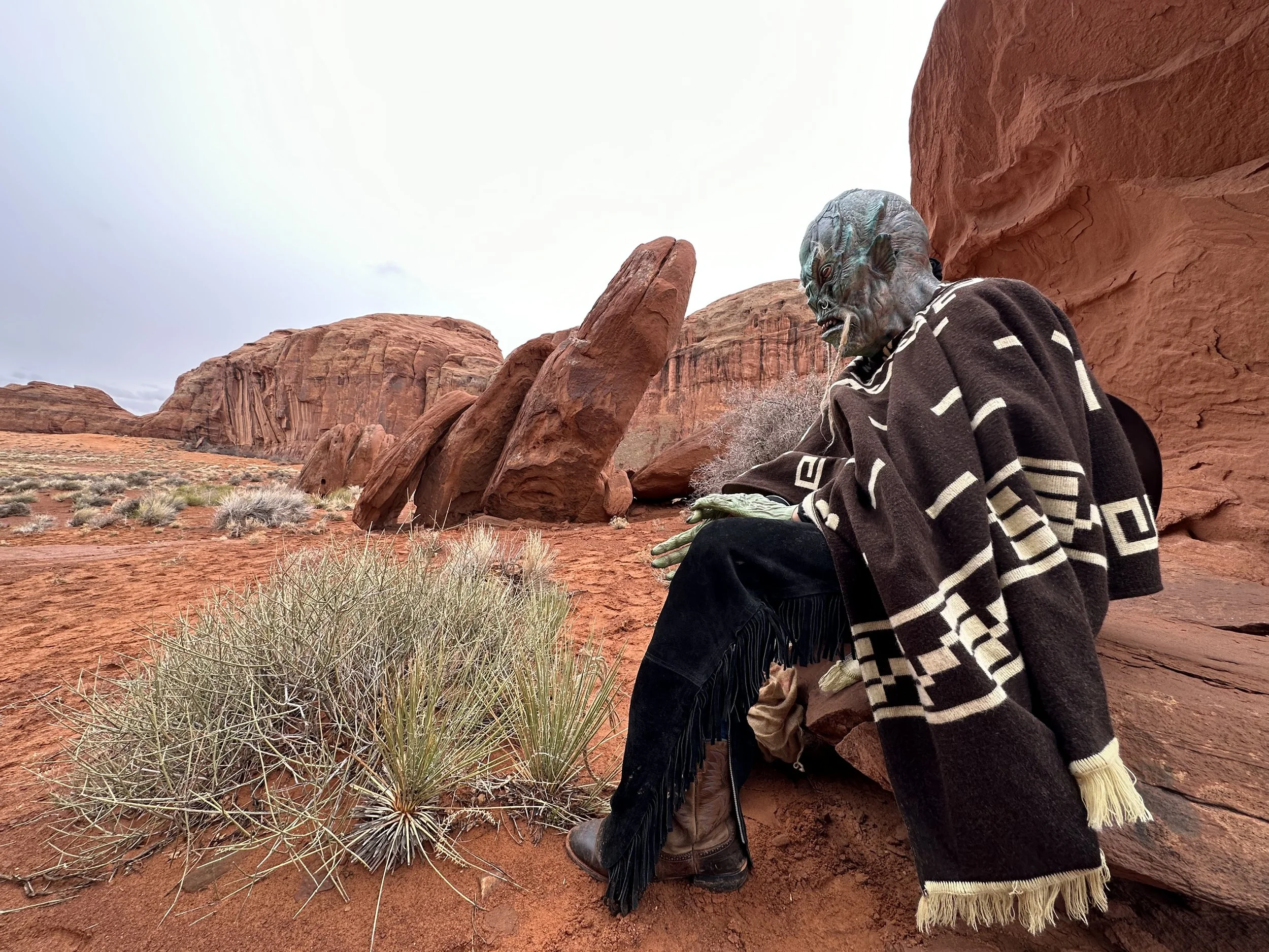 Playing on the space cowboy theme, Visionary director Kiran Koshy signed up to create & direct the album’s flagship video for the song The Trail. His idea; film in the Navajo Nation’s Monument Valley and create an alien planet feel. Full alien costumes and masks were custom made and the video was shot with a nod to the classic movie: The Ballad of Buster Scruggs. Kiran recruited L.A. based cinematographers Eric Zimmerman (Yellowstone season 2, Shrinking, etc.) and Josh Hess (walking dead etc) to shoot the epic and classic location of countless westerns. The result is a visual masterpiece.
